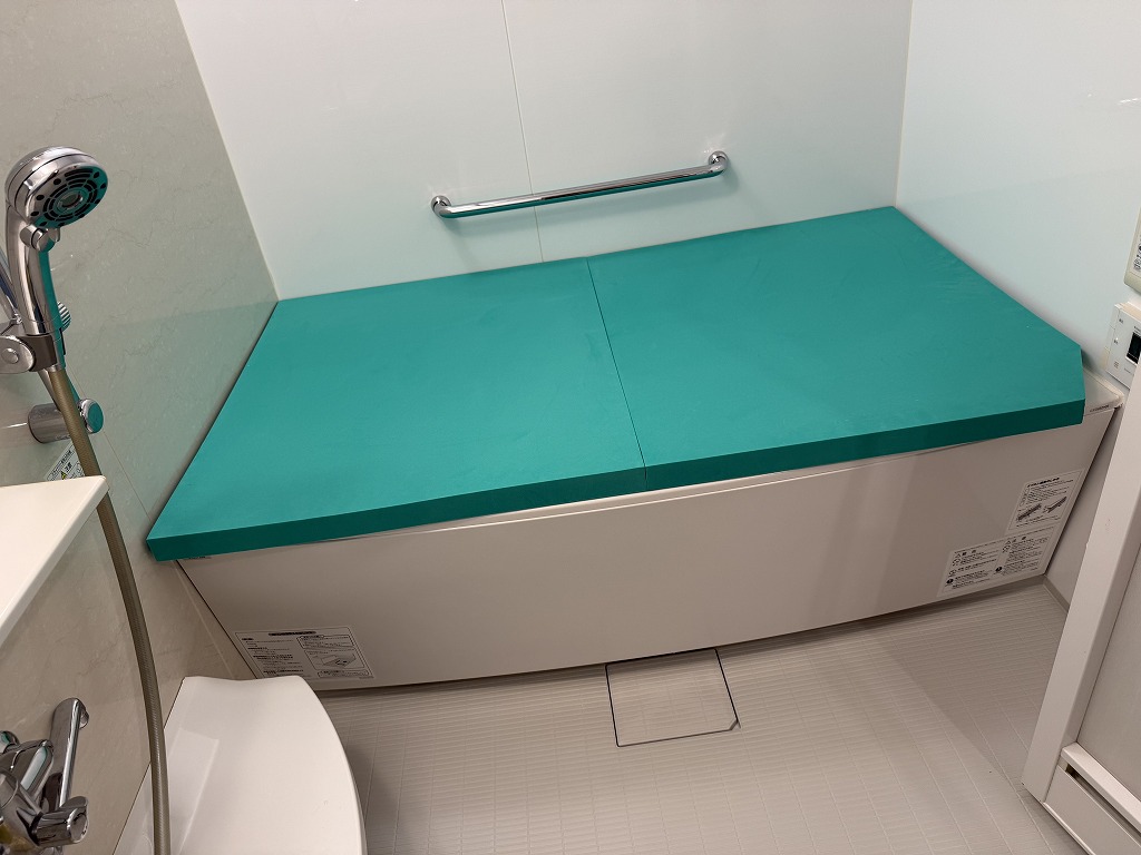 都内社員寮様 (1000×2000mm 30mm厚 緑色系) 24時間風呂 “風呂衛門”工事の際 風呂ふたもご購入いただきました |
