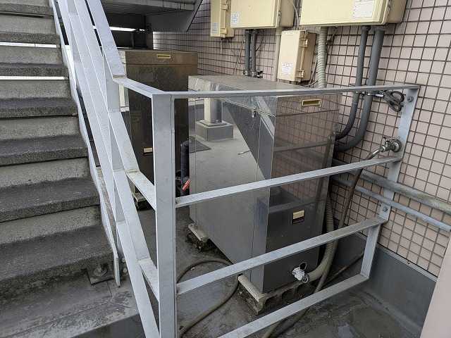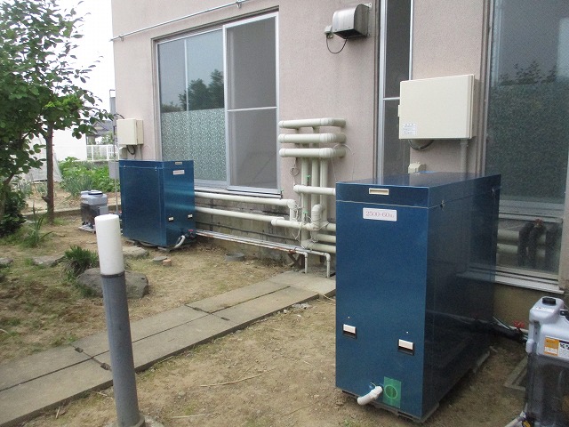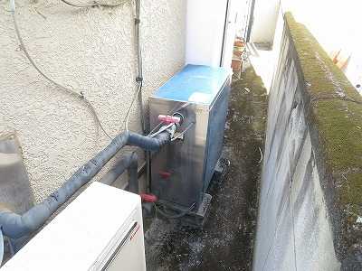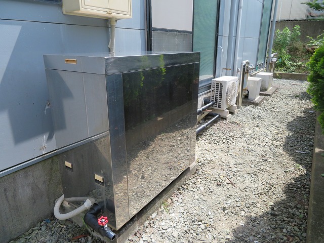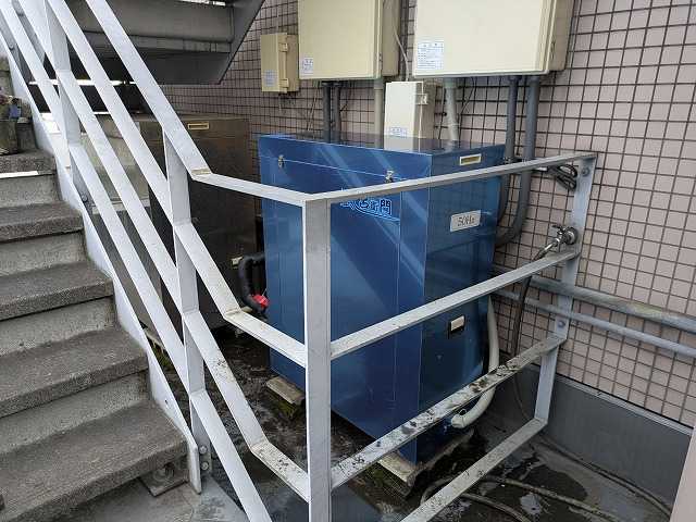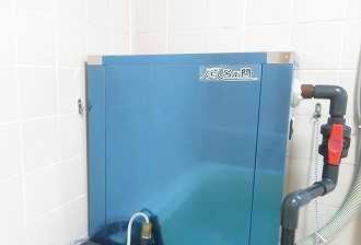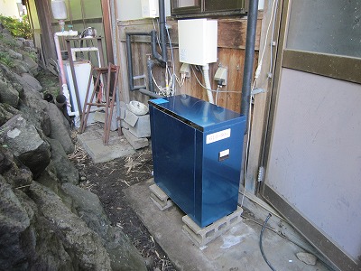 東京都 運輸関係社員宿舎様 (バイオライズ社から) 24時間風呂”風呂衛門” 設置工事 風呂衛門2500なら1台ですみ、メンテナンスもお客様の手で簡単にできる旨をご説明し |