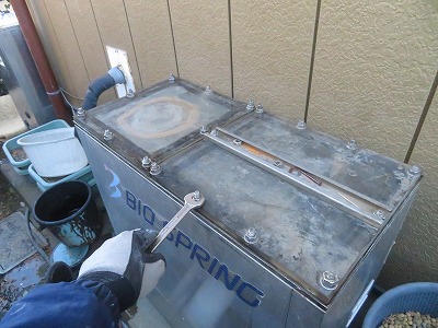 東京都 建設会社様 約1800リットル浴槽。人数は季節で変動20~50人以上の時も そんな猛暑の中 夕方前に作業完了 |